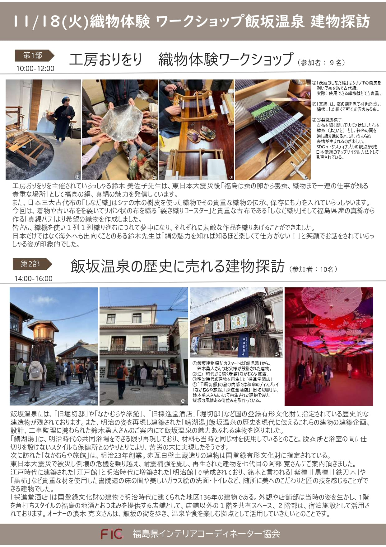 - 2026/01/07 FIC活動レポート-織物体験ワークショップ/飯坂温泉建物探訪/会員交流会/三浦工匠店見学